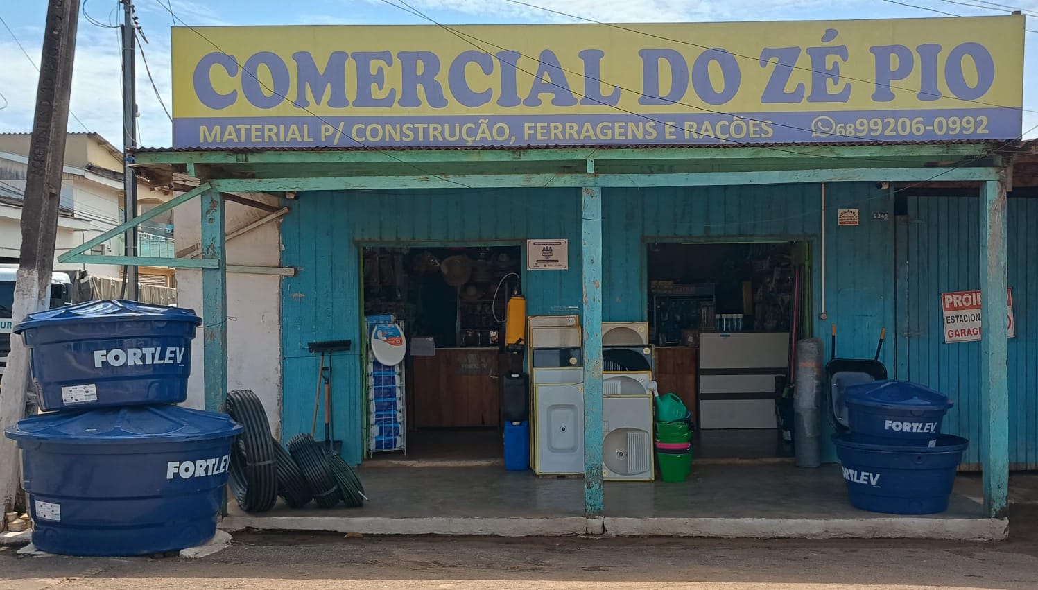 Comercial Zé Pio na Av. Santos Dumont 345, em Epitaciolândia! Somos o seu parceiro ideal para uma variedade de necessidades, desde a sua obra até os cuidados com seus animais. Oferecemos um mix completo de produtos com a qualidade e os preços justos que você procura. Venha descobrir a conveniência de encontrar tudo em um só lugar!